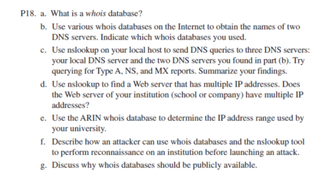 Solved P18 A What Is A Whois Database B Use Various Chegg Com